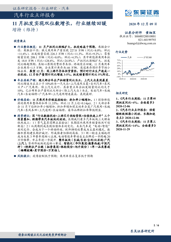 【东吴证券】【20201209】20201209-东吴证券-汽车行业点评报告:11月批发实现双位数增长,行业继续回暖-6页