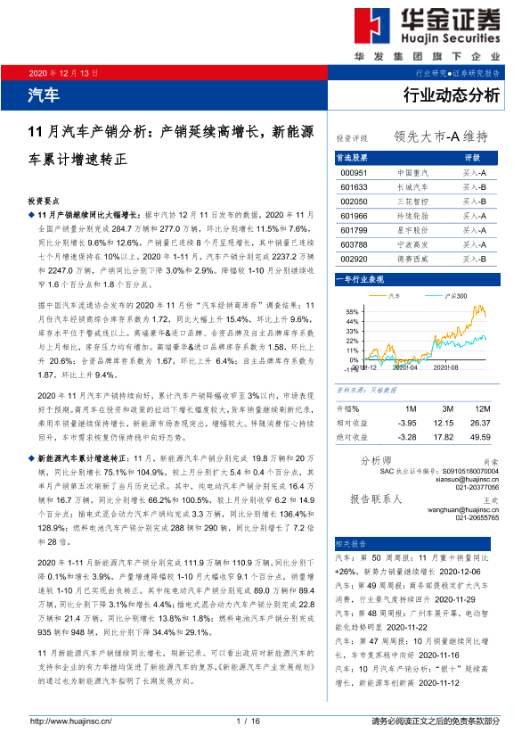 【华金证券】【20201213】11月汽车产销分析:产销延续高增长,新能源车累计增速转正-16页