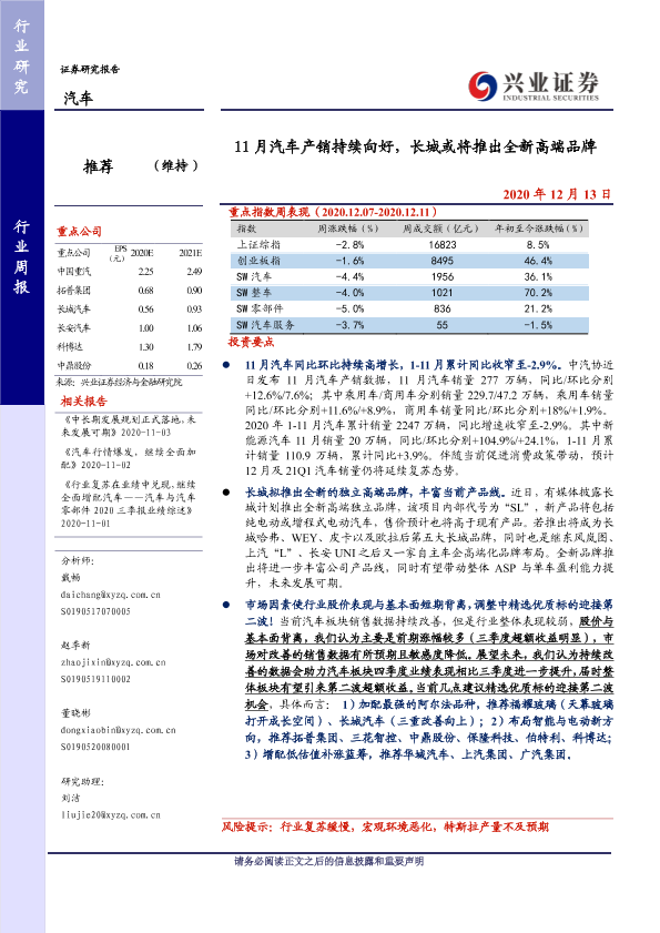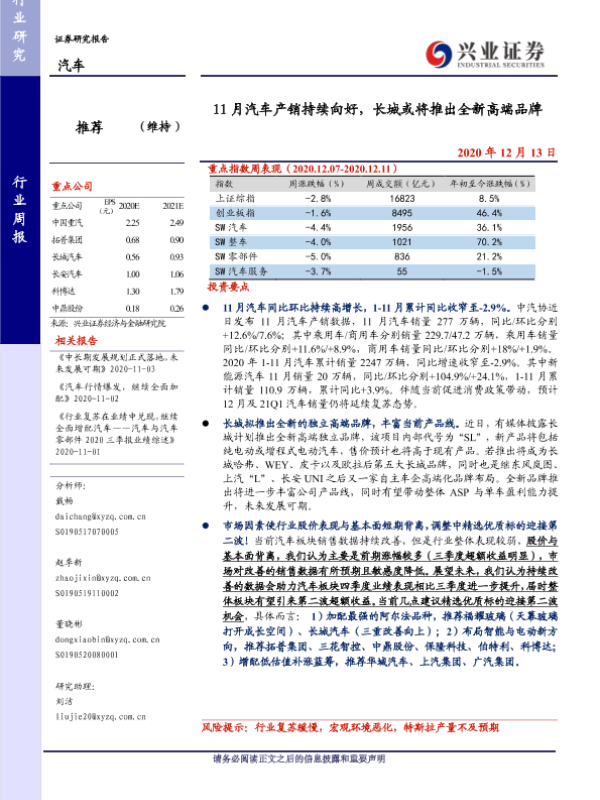 【兴业证券】【20201213】11月汽车产销持续向好,长城或将推出全新高端品牌-24页