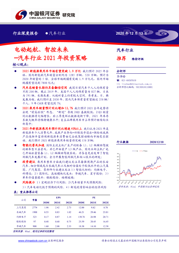 【银河证券】【20201213】汽车行业2021年投资策略:电动起航、智控未来-27页
