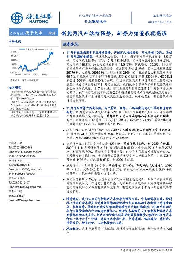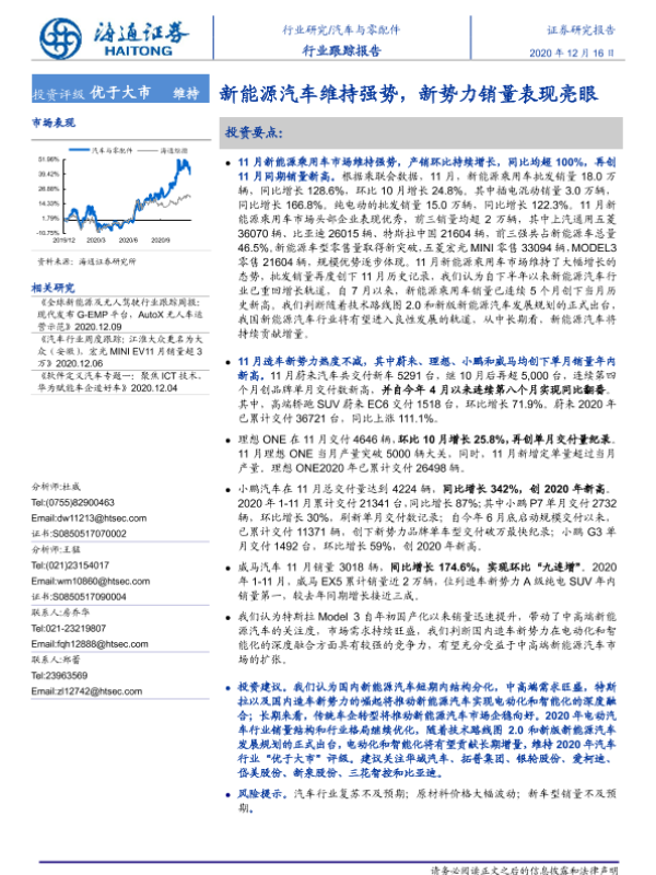 【海通证券】【20201216】汽车与零配件:新能源汽车维持强势,新势力销量表现亮眼-4页