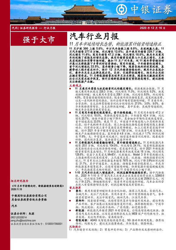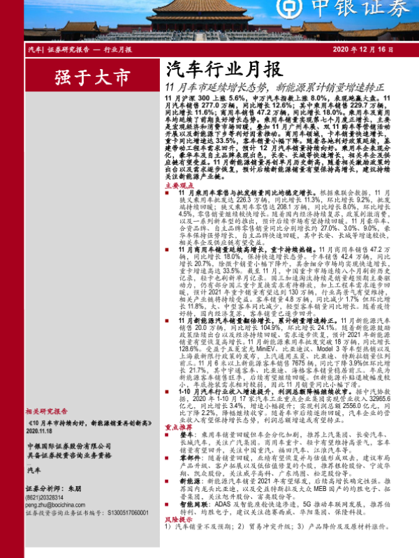 【中银证券】【20201216】11月车市延续增长态势,新能源累计销量增速转正-16页