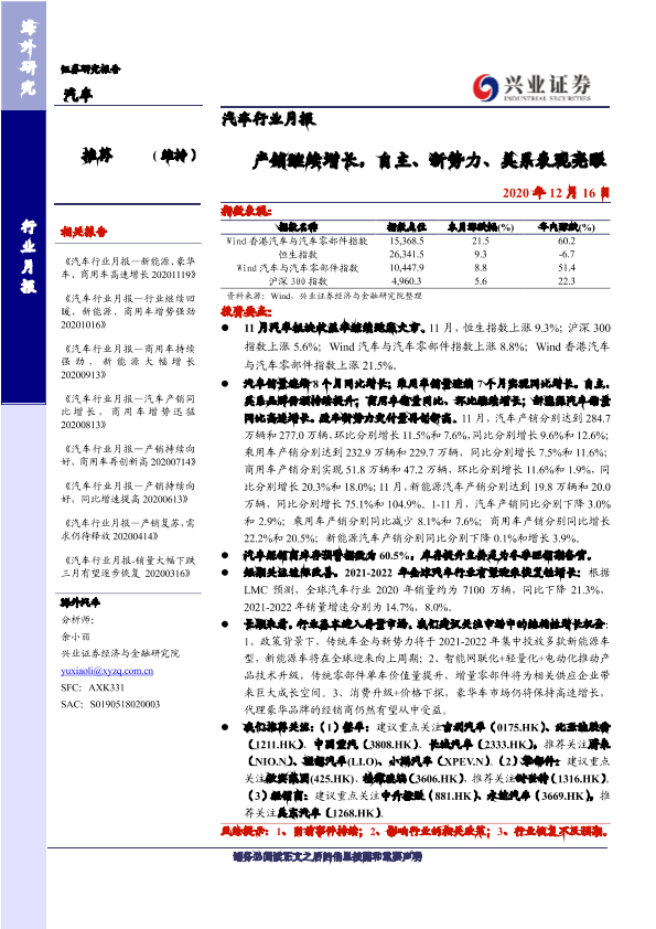 【兴业证券】【20201216】产销继续增长,自主、新势力、美系表现亮眼-13页