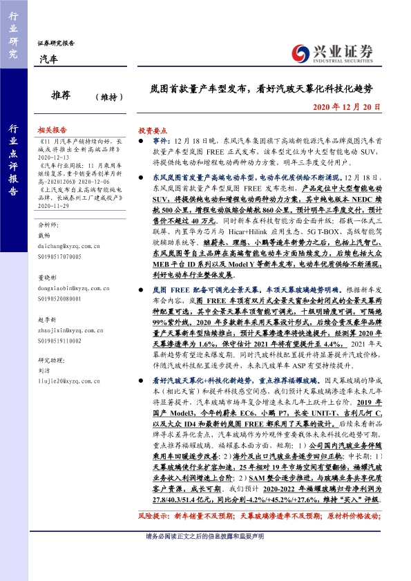 【兴业证券】【20201220】岚图首款量产车型发布,看好汽玻天幕化科技化趋势-4页