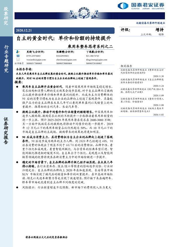 【国泰君安证券】【20201221】乘用车整车思考系列之二:自主的黄金时代:单价和份额的持续提升-11页