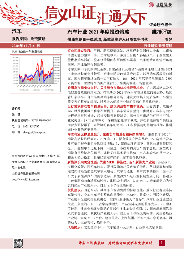 【山西证券】【20201221】汽车行业2021年度投资策略:燃油车销量平稳缓增,新能源车进入品质竞争时代-42页