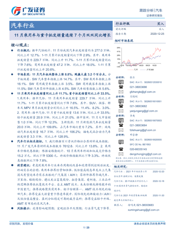 【广发证券】【20201225】11月乘用车与重卡批发销量连续7个月双双同比增长-23页
