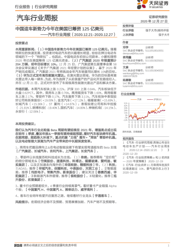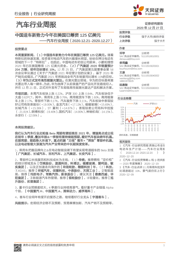 【天风证券】【20201227】汽车行业周报:中国造车新势力今年在美国已筹资125亿美元-13页