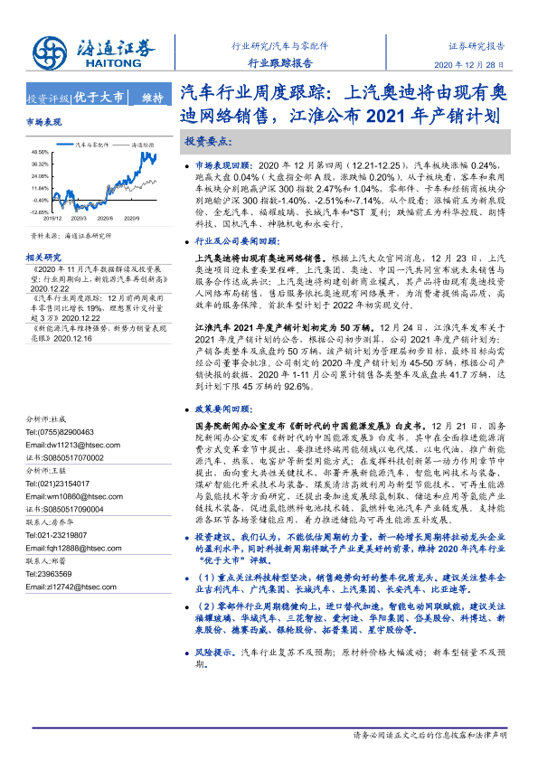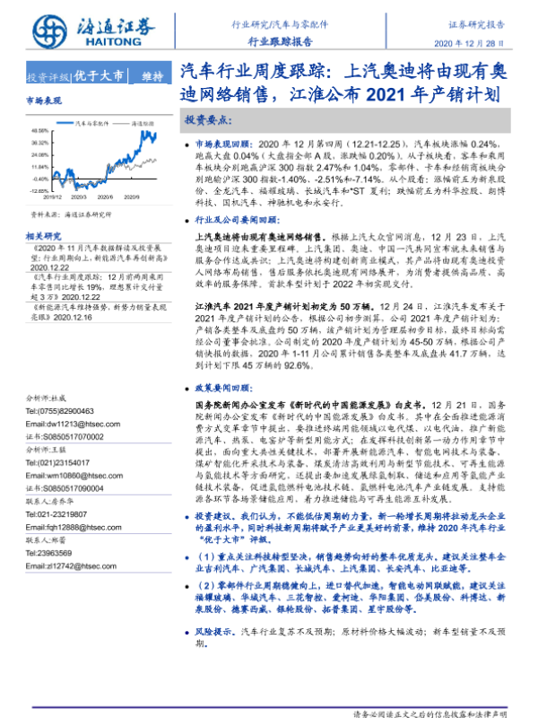 【海通证券】【20201228】汽车行业周度跟踪:上汽奥迪将由现有奥迪网络销售,江淮公布2021年产销计划-3页