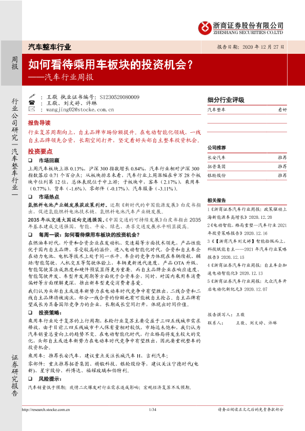 【浙商证券】【20201227】20201227-浙商证券-汽车行业周报:如何看待乘用车板块的投资机会?-34页