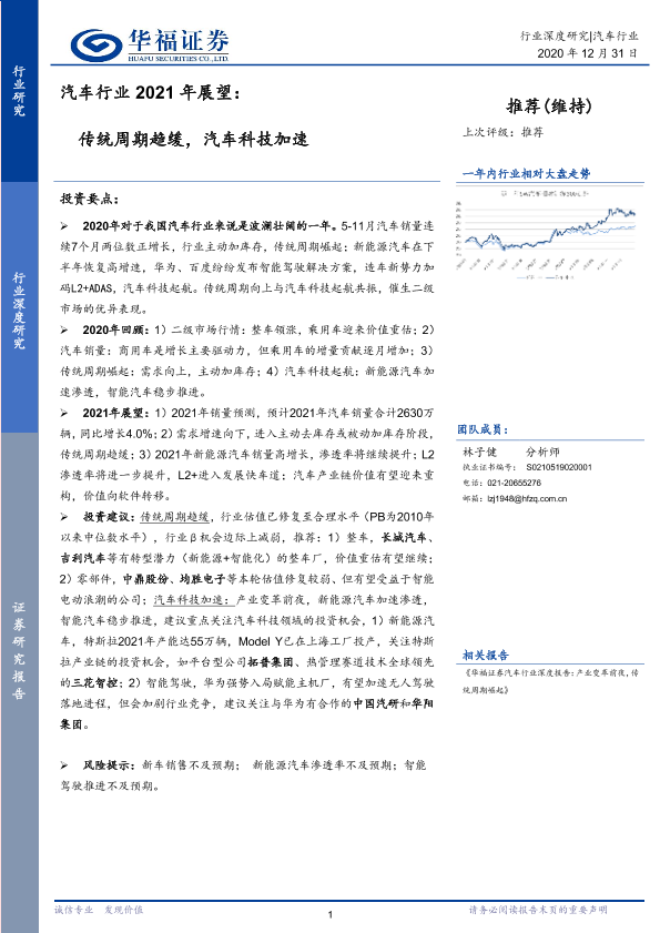 【华福证券】【20201231】汽车行业2021年展望:传统周期趋缓,汽车科技加速-20页