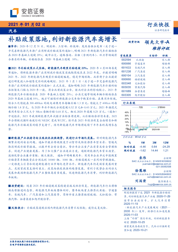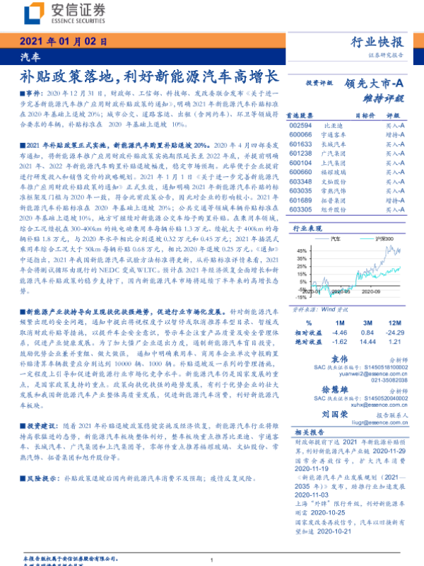 【安信证券】【20210102】汽车行业快报:补贴政策落地,利好新能源汽车高增长-3页