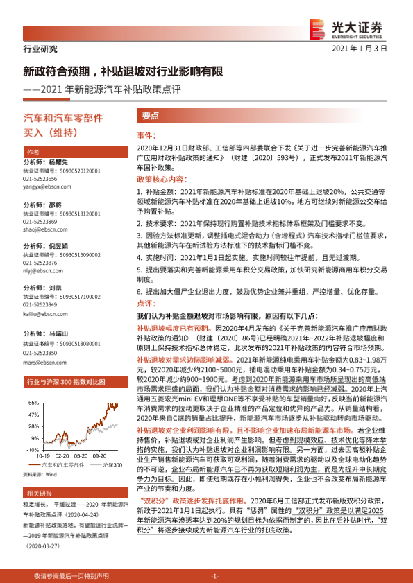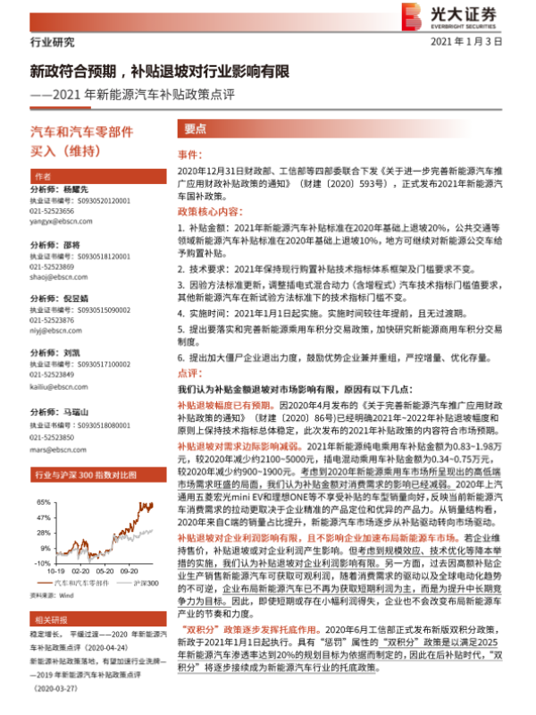 【光大证券】【20210103】2021年新能源汽车补贴政策点评:新政符合预期,补贴退坡对行业影响有限-6页