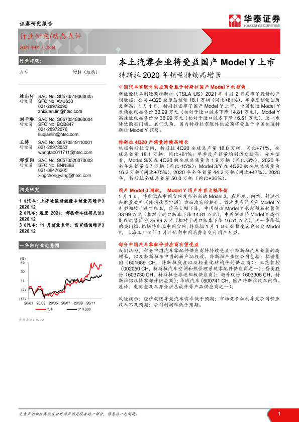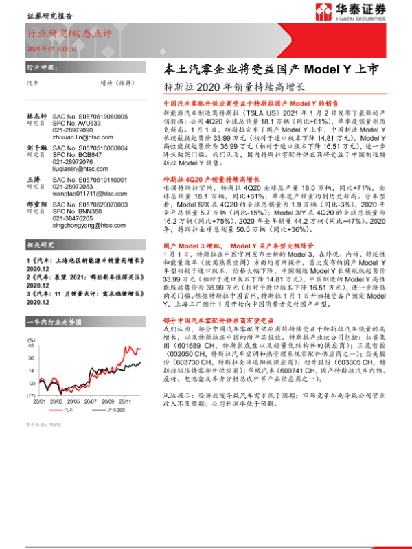 【华泰证券】【20210103】汽车行业:特斯拉2020年销量持续高增长:本土汽零企业将受益国产Model Y上市-4页