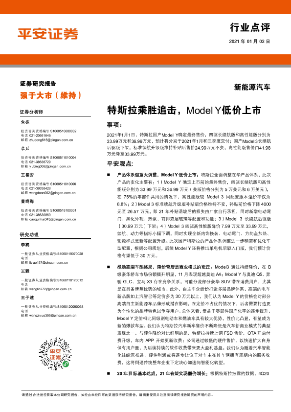 【平安证券】【20210103】新能源汽车:特斯拉乘胜追击,Model Y低价上市-5页