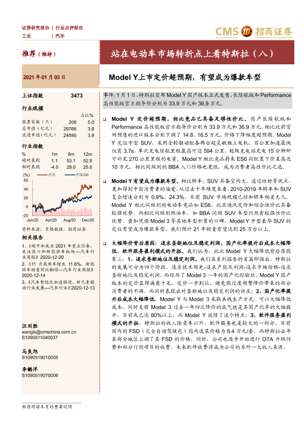 【海通证券】【20210103】站在电动车市场转折点上看特斯拉(八):Model Y上市定价超预期,有望成为爆款车型-4页