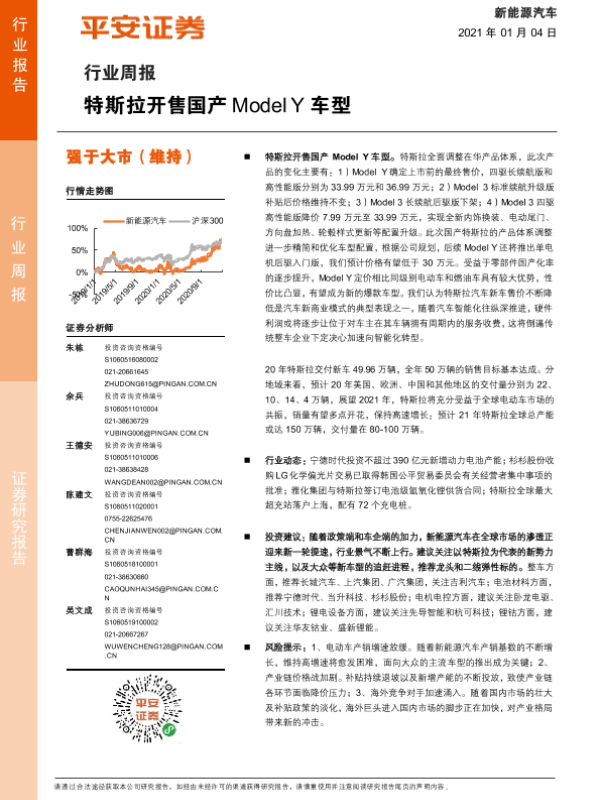 【平安证券】【20210104】新能源汽车行业周报:特斯拉开售国产Model Y车型-10页