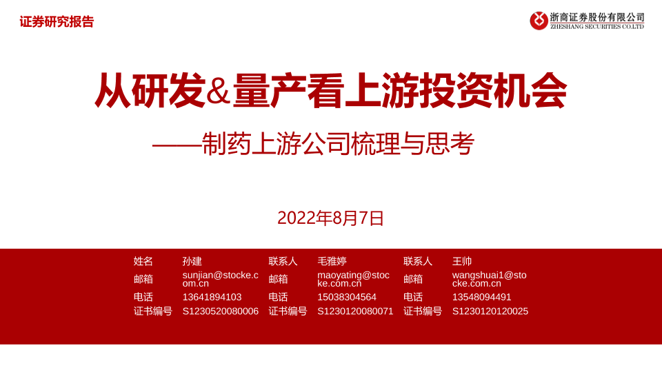 【浙商证券】【20220807】医药生物行业制药上游公司梳理与思考:从研发&量产看上游投资机会-35页