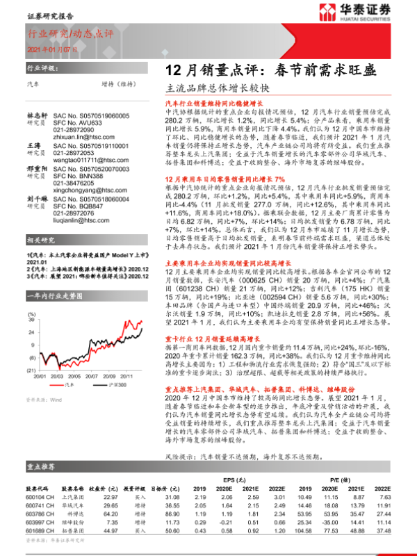 【华泰证券】【20210107】汽车 12月销量点评:春节前需求旺盛-主流品牌总体增长较快-6页