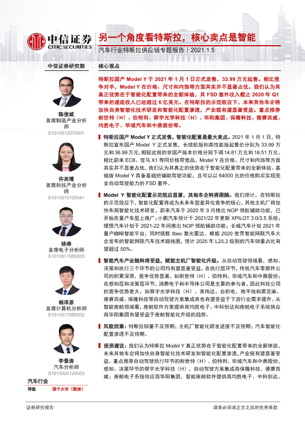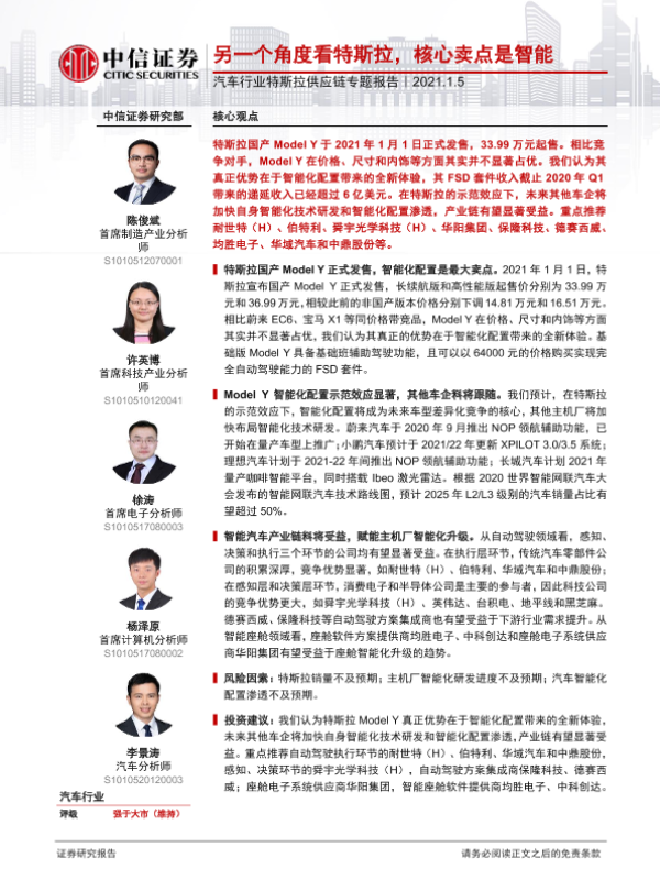 【中信证券】【20210105】汽车行业特斯拉供应链专题报告:另一个角度看特斯拉,核心卖点是智能-10页