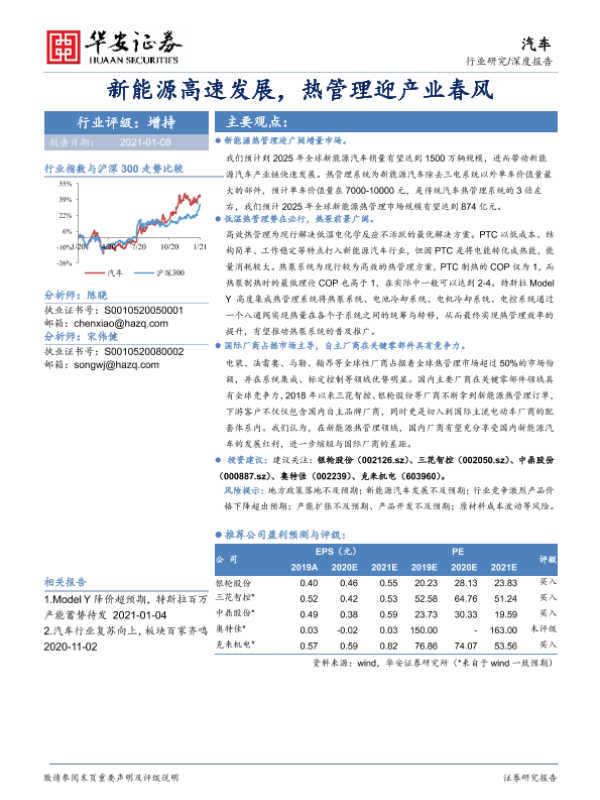 产业分析 市场预测 投资建议 新能源汽车 热管理