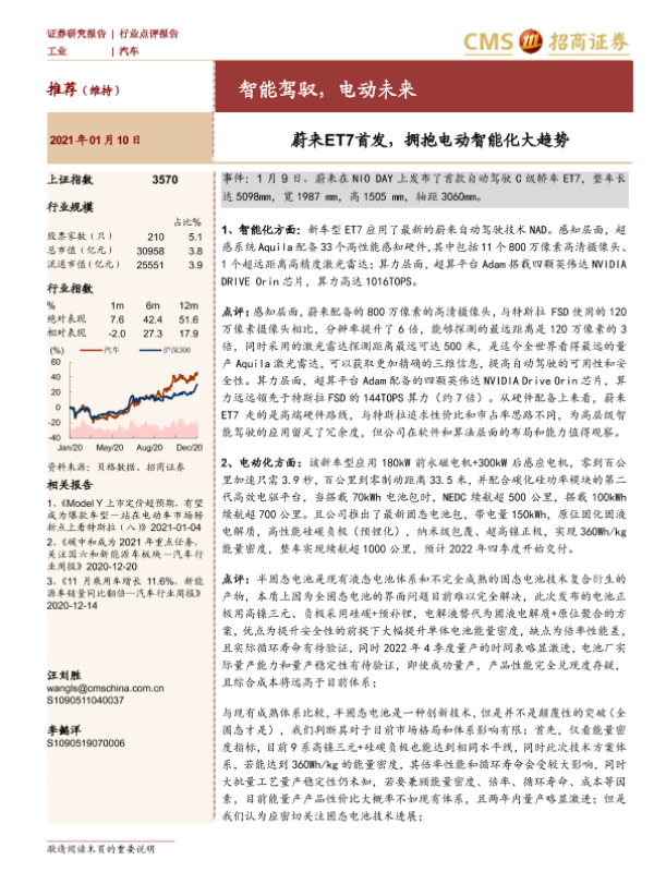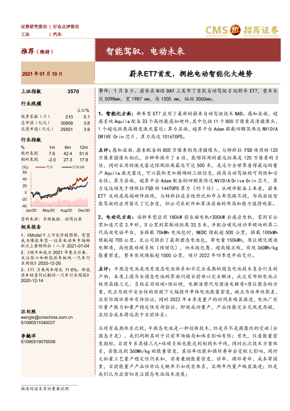 【海通证券】【20210110】汽车行业:蔚来ET7首发,拥抱电动智能化大趋势-智能驾驭,电动未来-5页