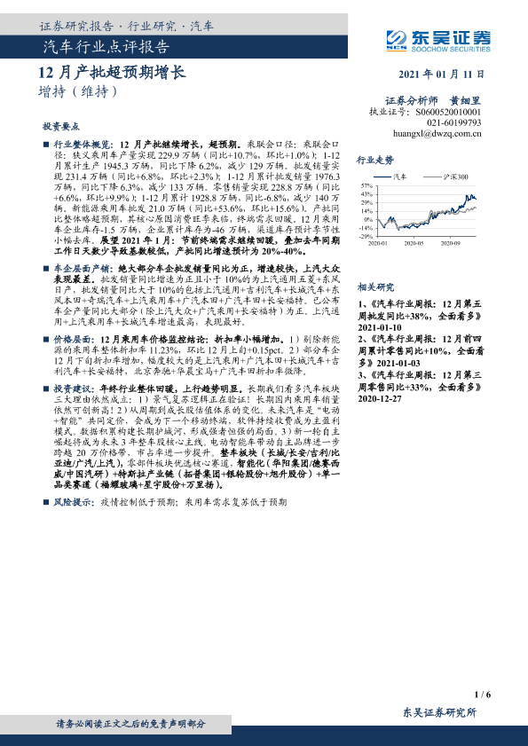 【东吴证券】【20210111】汽车行业点评报告:12月产批超预期增长-6页