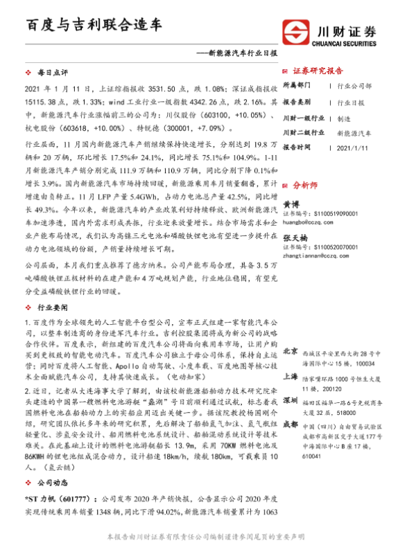 【川财证券】【20210111】新能源汽车行业日报:百度与吉利联合造车-3页