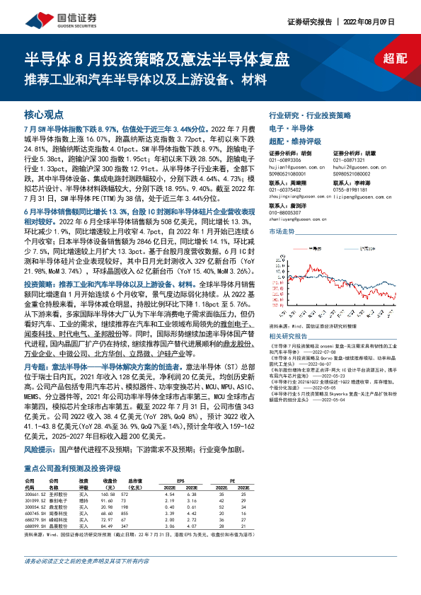 【国信证券】【20220809】半导体行业8月投资策略及意法半导体复盘:推荐工业和汽车半导体以及上游设备、材料-29页