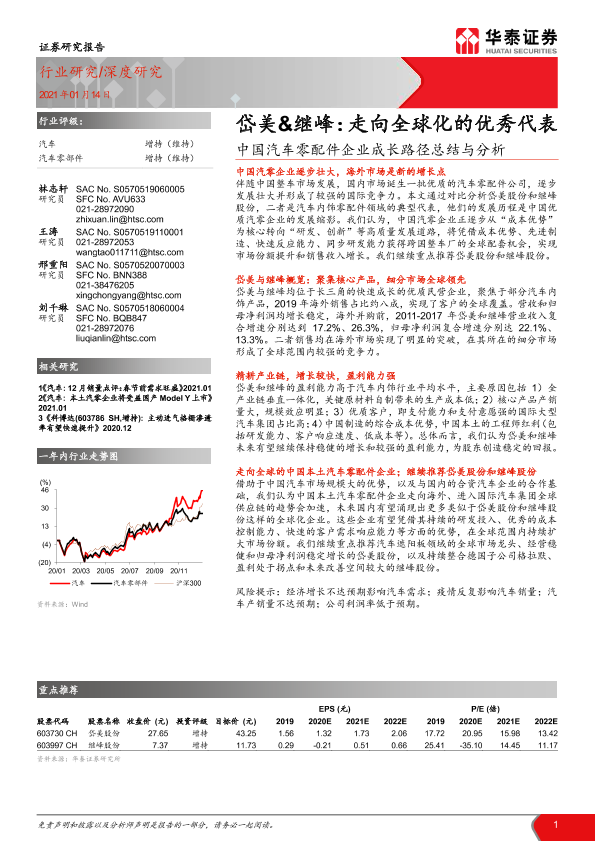 【华泰证券】【20210114】中国汽车零配件企业成长路径总结与分析:岱美&继峰:走向全球化的优秀代表-25页