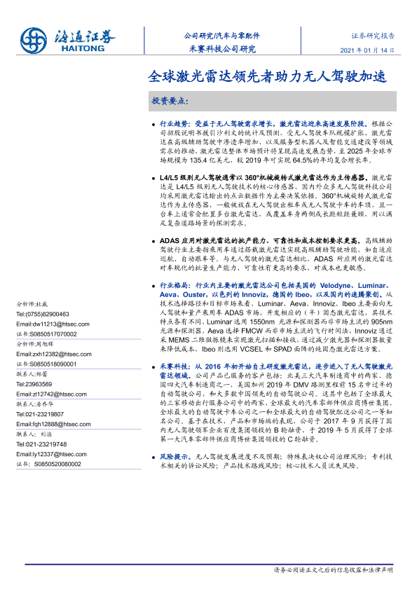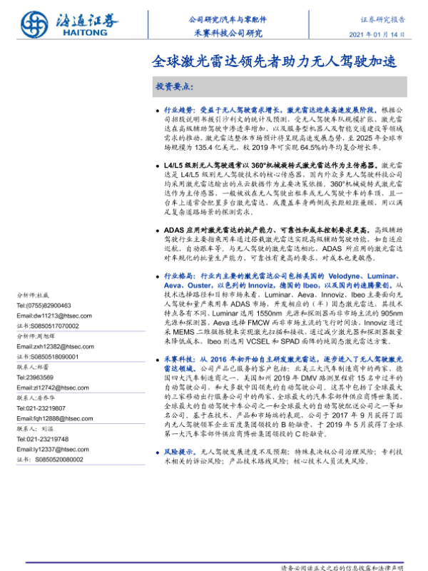 【海通证券】【20210114】全球激光雷达领先者助力无人驾驶加速-17页