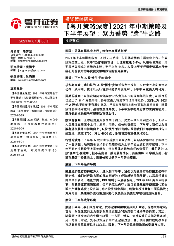 【粤开证券】【20210705】2021年中期策略及下半年展望:聚力蓄势,“犇”牛之路-53页