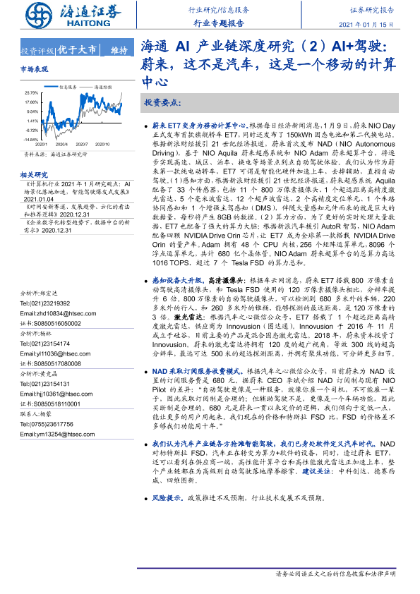 【海通证券】【20210115】海通AI产业链深度研究(2)AI+驾驶:蔚来,这不是汽车,这是一个移动的计算中心-10页