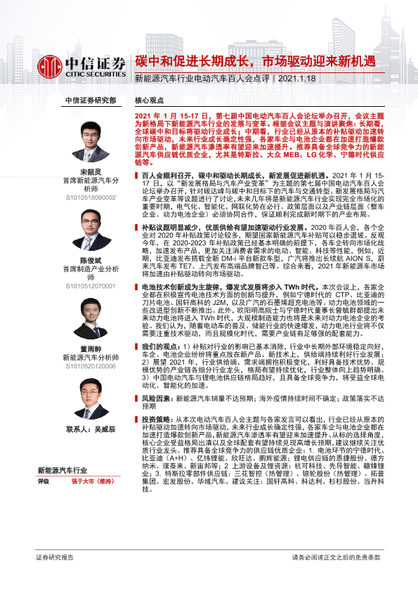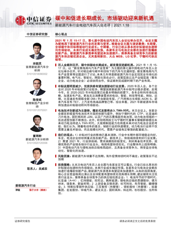 【中信证券】【20210118】20210118-中信证券-新能源汽车行业电动汽车百人会点评:碳中和促进长期成长,市场驱动迎来新机遇-2页