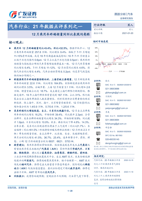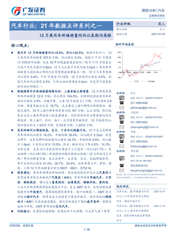 【广发证券】【20210120】21年数据点评系列之一-12月乘用车终端销量同环比表现均亮眼-20页