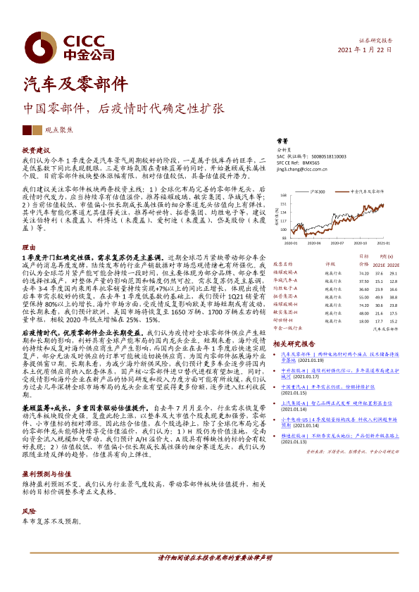 【中金公司】【20210122】汽车及零部件:中国零部件,后疫情时代确定性扩张-20页