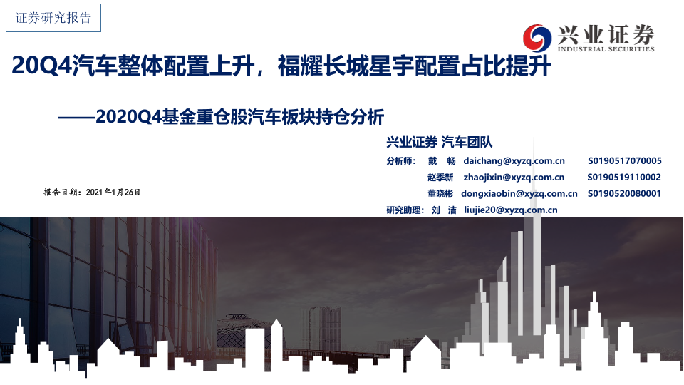 【兴业证券】【20210126】2020Q4基金重仓股汽车板块持仓分析:20Q4汽车整体配置上升,福耀长城星宇配置占比提升-11页