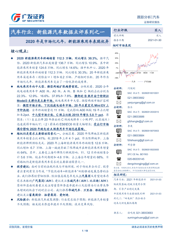 【广发证券】【20210130】汽车行业:新能源汽车数据点评系列之一:2020年是市场化元年,新能源乘用车表现优异-19页