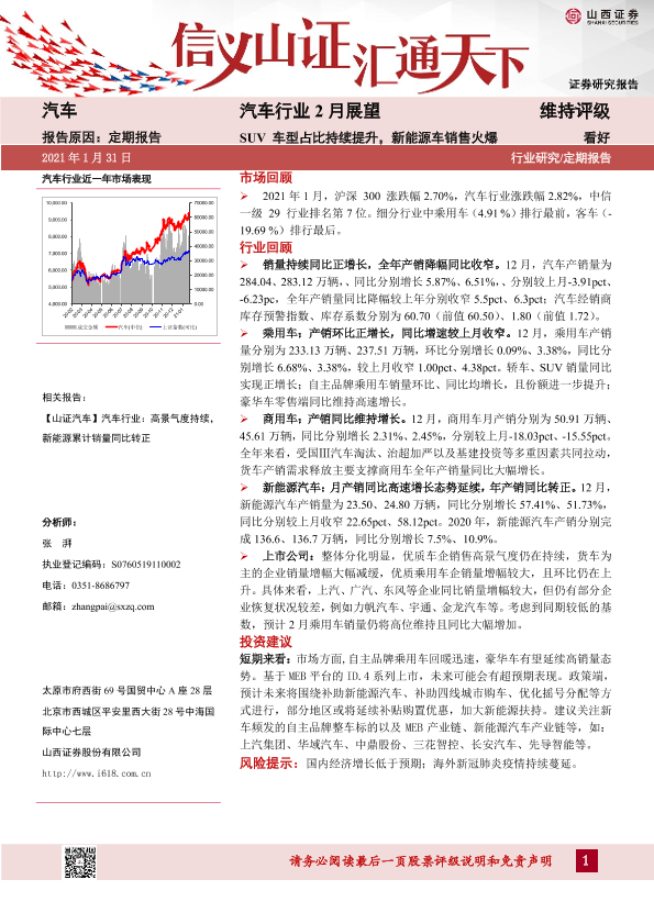 【山西证券】【20210131】汽车行业2月展望:SUV车型占比持续提升,新能源车销售火爆-31页