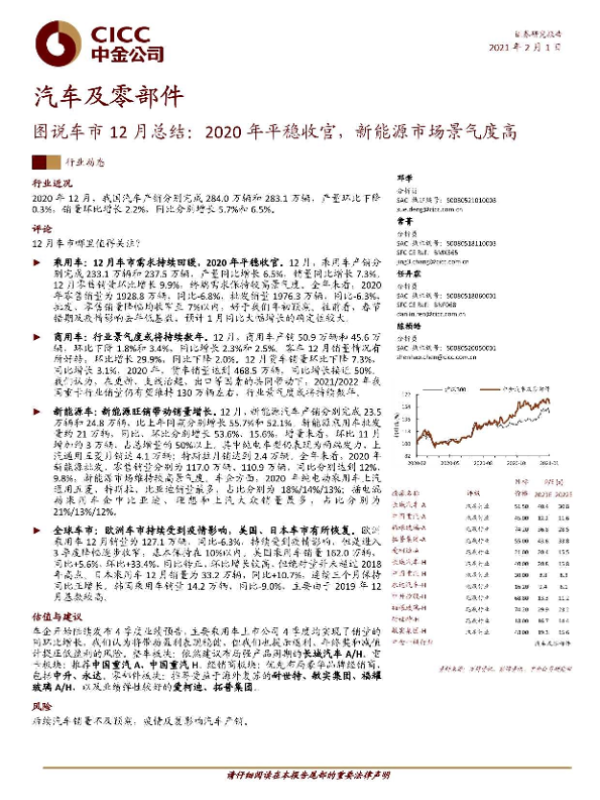 【中金公司】【20210201】图说车市12月总结:2020年平稳收官,新能源市场景气度高-22页