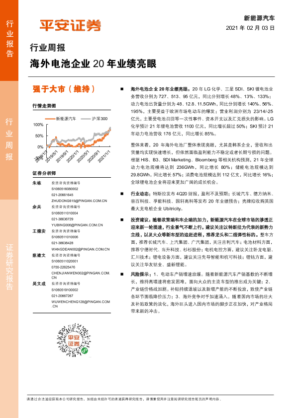 【平安证券】【20210203】新能源汽车行业周报:海外电池企业20年业绩亮眼-10页