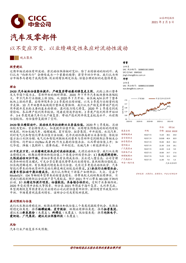 【中金公司】【20210203】汽车及零部件行业:以不变应万变,以业绩确定性来应对流动性波动-13页