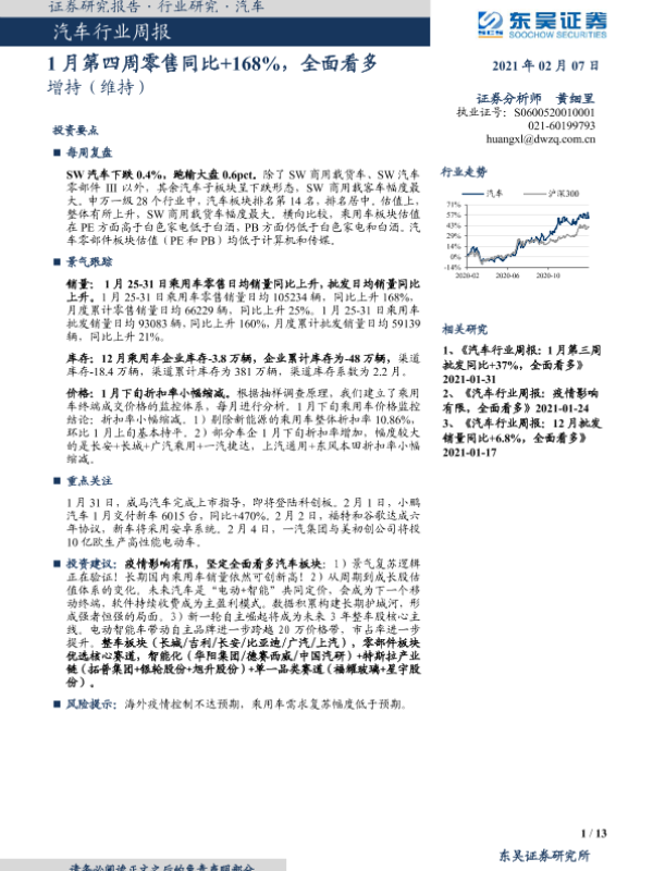 【东吴证券】【20210207】汽车行业周报:1月第四周零售同比+168%,全面看多-13页