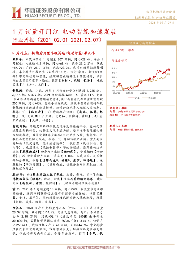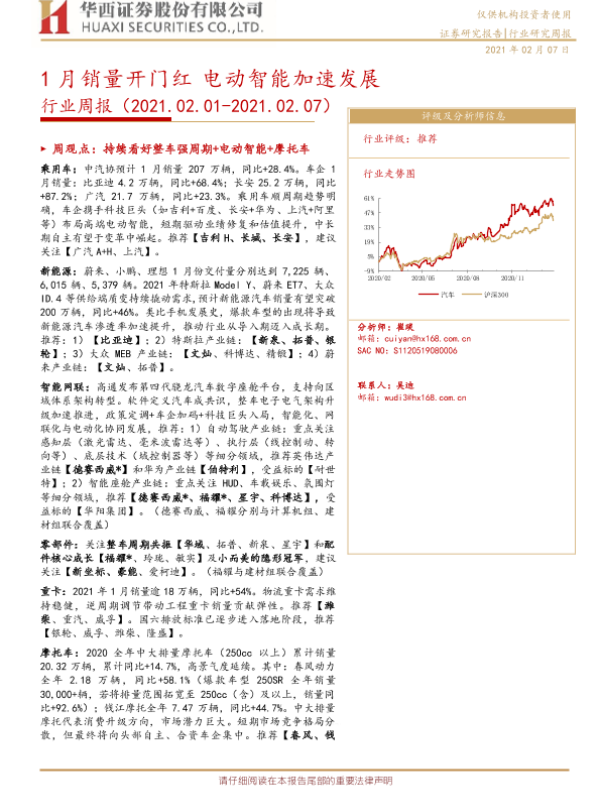 【华西证券】【20210207】20210207-华西证券-汽车行业周报:1月销量开门红 电动智能加速发展-21页