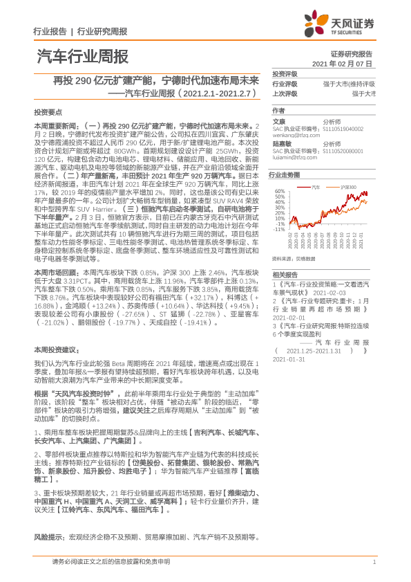 【天风证券】【20210207】再投290亿元扩建产能,宁德时代加速布局未来-13页