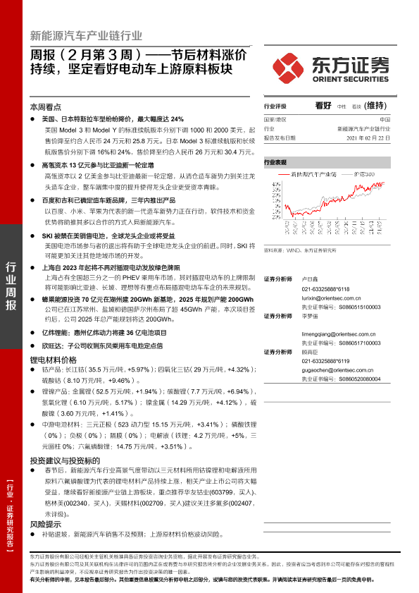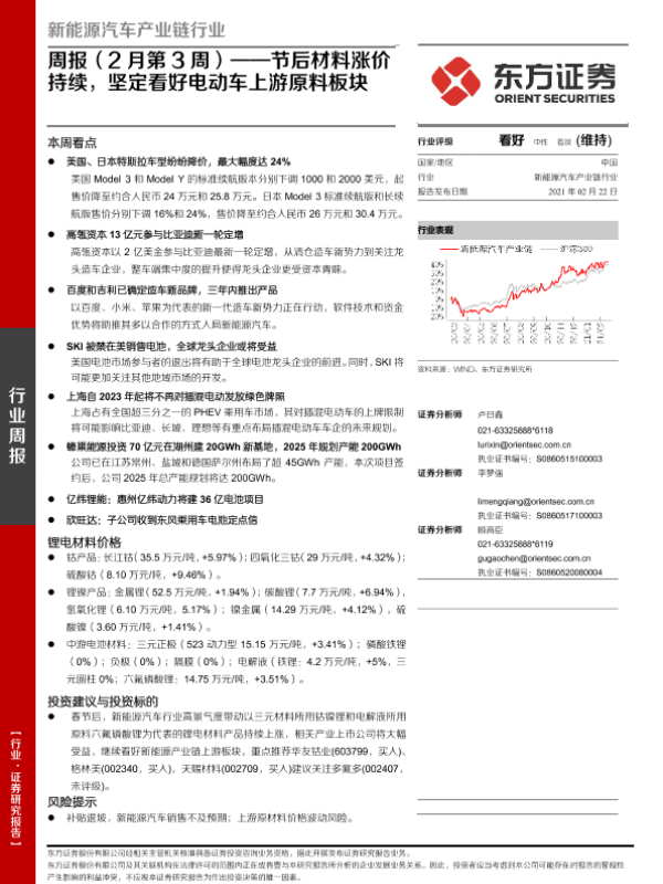 【东方证券】【20210222】20210222-东方证券-新能源汽车产业链行业周报(2月第3周):节后材料涨价持续,坚定看好电动车上游原料板块-19页
