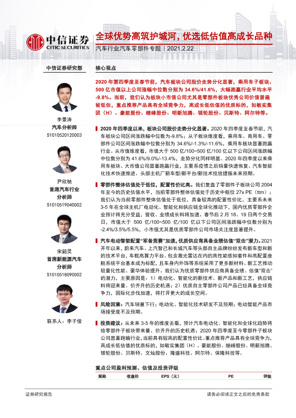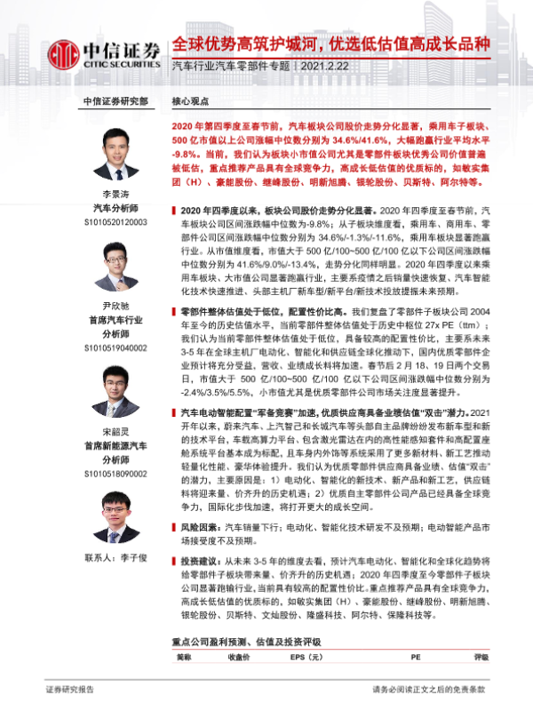 【中信证券】【20210222】汽车行业汽车零部件专题:全球优势高筑护城河,优选低估值高成长品种-14页