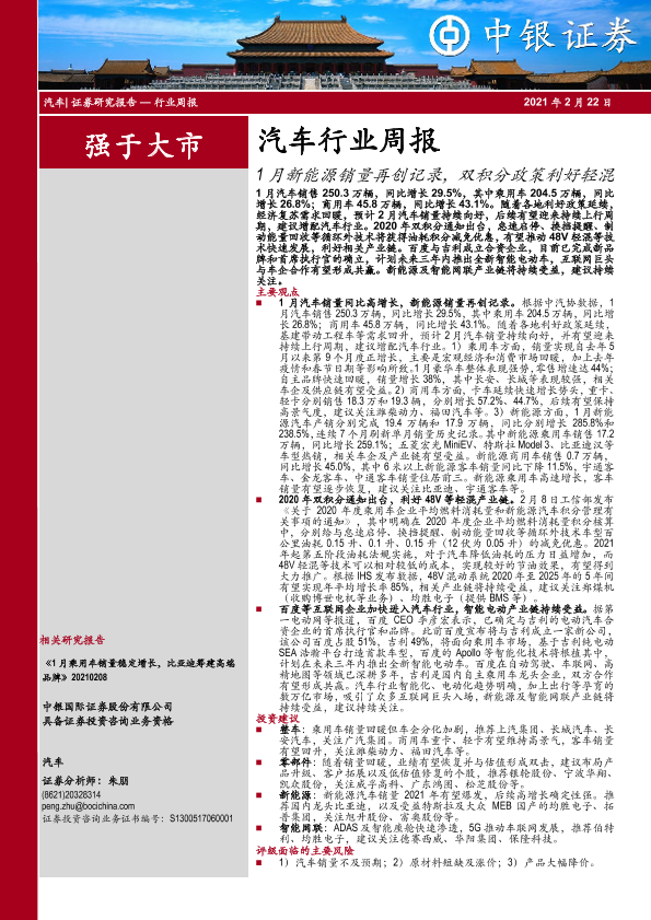 【中银证券】【20210222】20210222-中银证券-汽车行业周报:1月新能源销量再创记录,双积分政策利好轻混-15页
