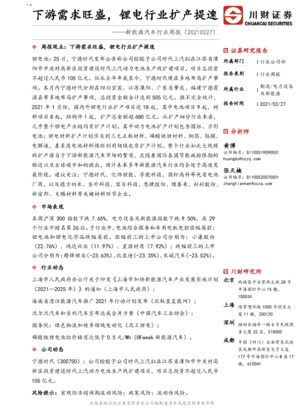 【川财证券】【20210227】新能源汽车行业周报:下游需求旺盛,锂电行业扩产提速-15页
