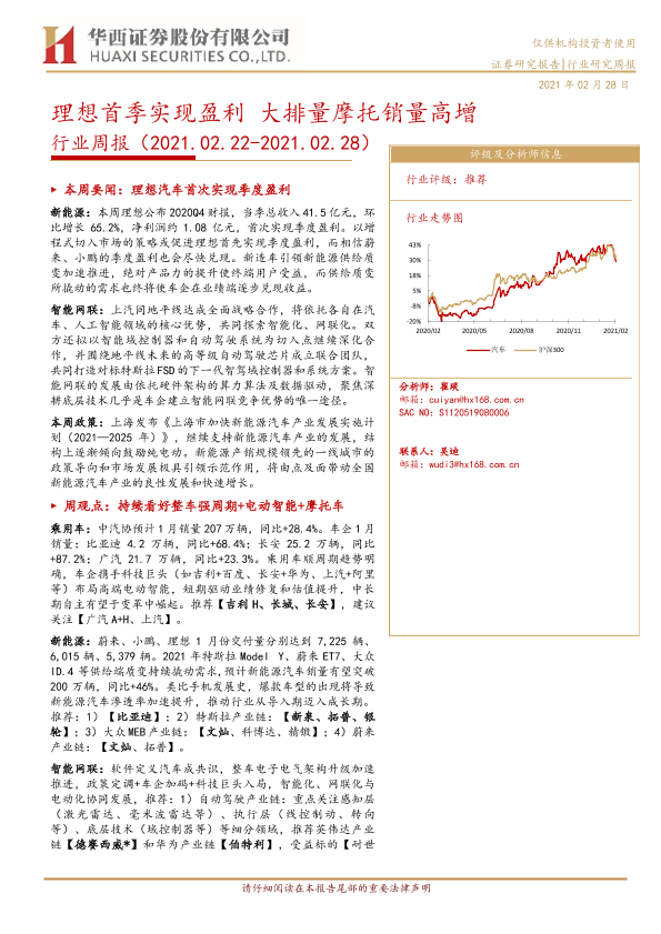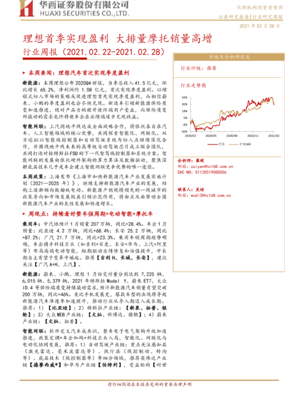 【华西证券】【20210228】20210228-华西证券-汽车行业周报:理想首季实现盈利 大排量摩托销量高增-21页